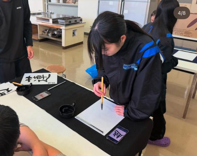 「今年の一字」をテーマにそれぞれ想いを込めた漢字を書き初めし、そのあとはたこ焼きパーティーを行いました。イベントとして書き初めをしたのは初めてでしたが、生徒からは「楽しかった」、「今年をどのような一年にしていきたいかなど一年の意気込みを発表しあえたのは良かった」などの声が多かったので、これからの恒例行事にしていきたいと思います。