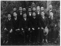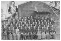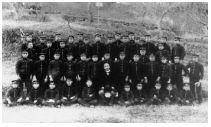 前列右から6人目が阿部初代校長、左上は周布県知事