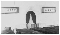 講堂正面に掲げられた「至誠無息」「堅忍不抜」の校訓(大正3年頃)