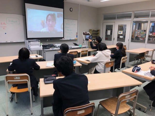 1年 横浜国立大学の留学生との交流というとても貴重な経験をさせていただき、ありがとうございました。写真を見てどこの国かあてたり、Kahootを使っていろいろな国について早押しクイズをしたりして、いろいろな国を楽しみながら知ることができたことがとても楽しく印象に残っています。