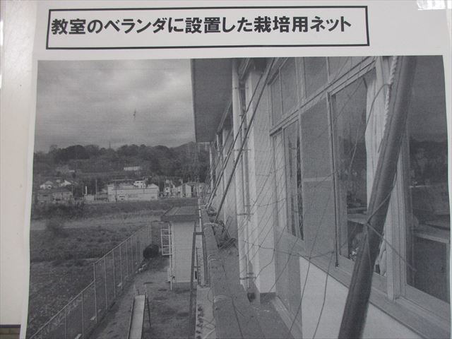 グリーンカーテンとして、ツル植物を栽培し、夏場の強い日差しを弱める。