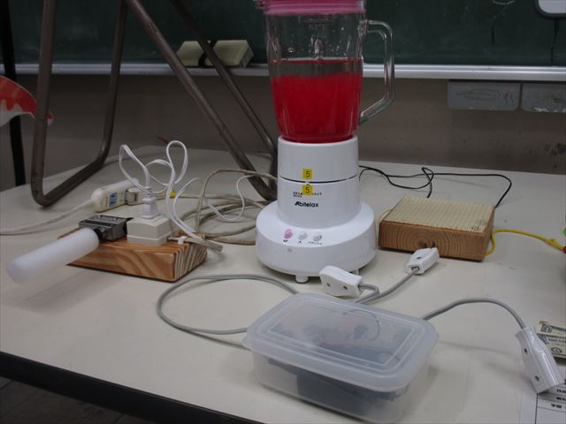 職業の時間にミキサー(牛乳パックを粉砕するために使用)を操作するために使っている。以前から使われていたスイッチだが、安全性や使い勝手をよくするために改良した。Pullスイッチと電源リレーは、上記棒スイッチと用途は同じだが、よりわずかな動きにも対応できる。