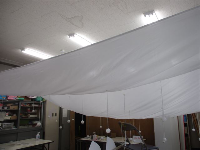 おはなしの授業で「かさじぞう」など冬や雪に関わる絵本教材を使った内容展開から、その雰囲気を感じてほしいため作成しました。その雰囲気を強調して伝えたく、あえて大きめにしました。児童には床に座ってもらい、頭上を雪が舞うよう上下して使用しました。