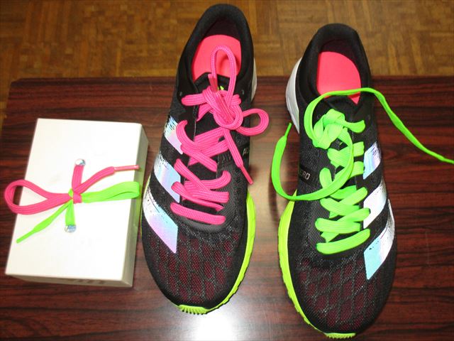 ➁実際の靴で靴の色と異なるわかりやすいひもを用意する。