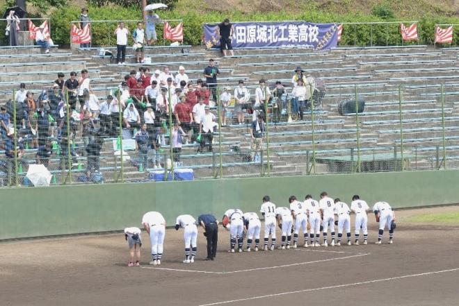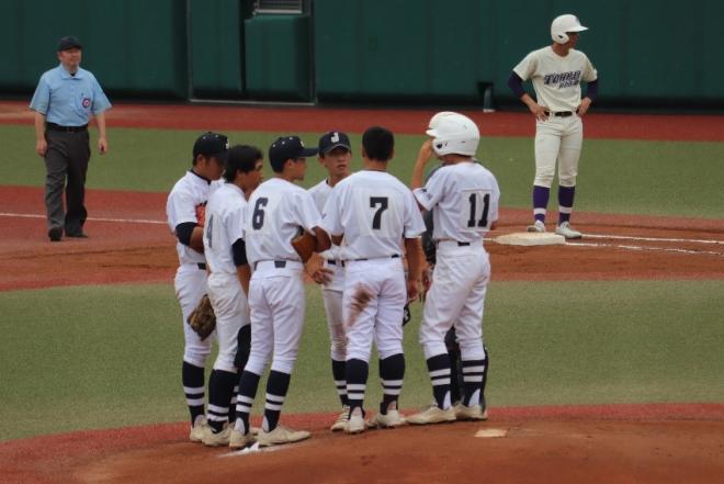 3戦目(8月20日)、高浜高校との対戦。ここまで2敗しているものの5点差以上の勝利で県大会への切符を手に入れられる、と意気込んで挑みました。初回、2回と連続して得点したものの、中盤に逆転を許してしまい、結果としては3-9で敗北。県大会出場の夢を叶えることはできませんでした。