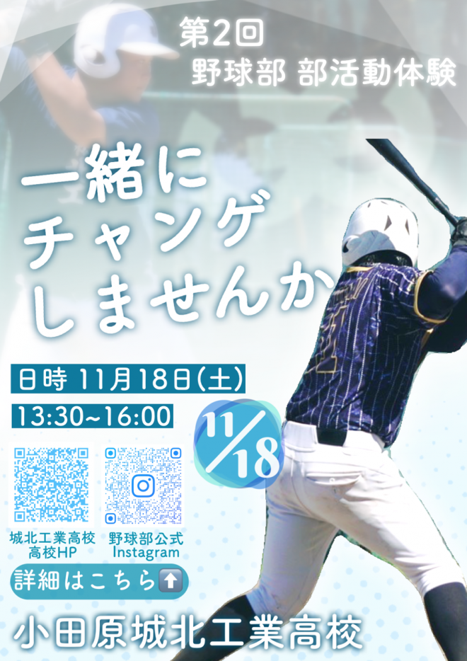 この機会に城北工の特徴でもある工業と野球どちらも体験してください!