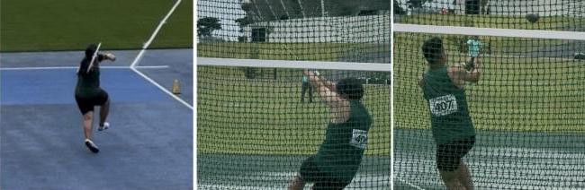 男子ハンマー投げの結果は野口さんが58m77の自己新記録で第3位、吉村さんは49m64ので第6位と入賞を果たしました。内藤さんは、45m75で第10位でした。