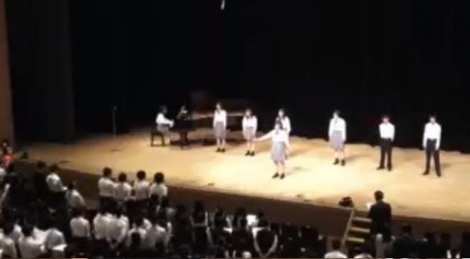 最後は生徒全員で校歌を斉唱し、閉会となりました。