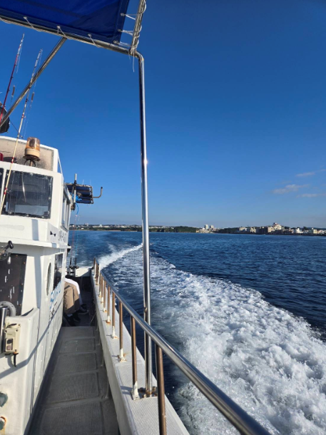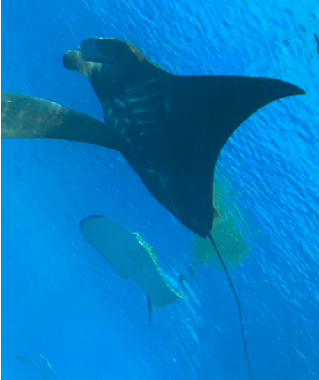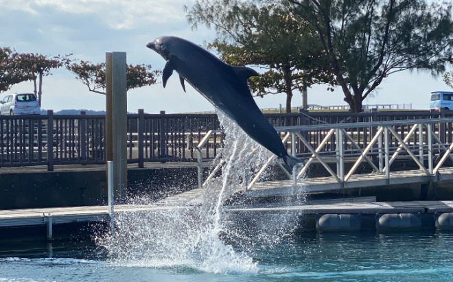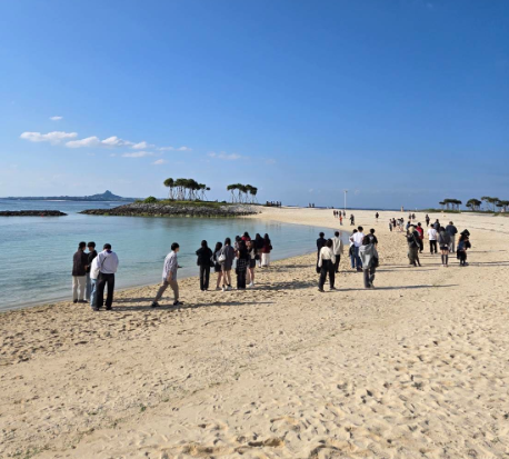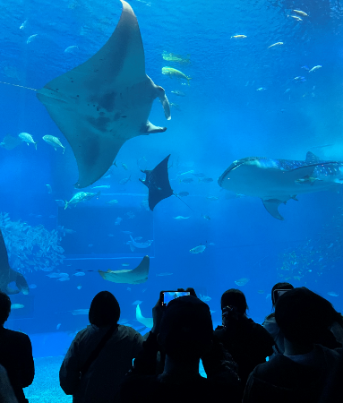 伊江島以外のコースでは美ら海水族館も組み込まれ、巨大水槽を泳ぐジンベイザメの存在感に感動している生徒も多い様子でした。