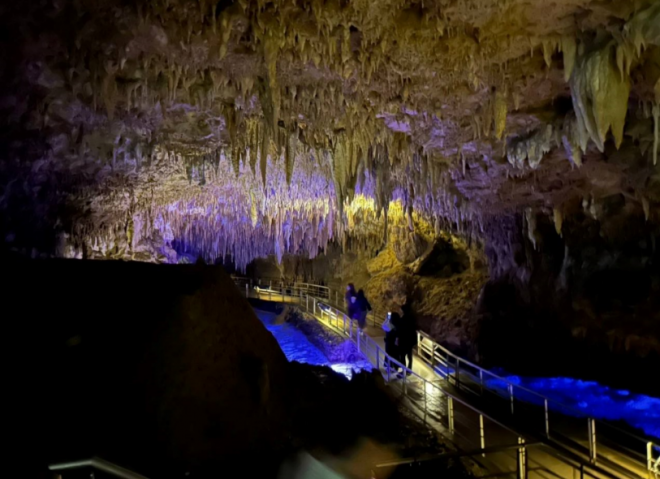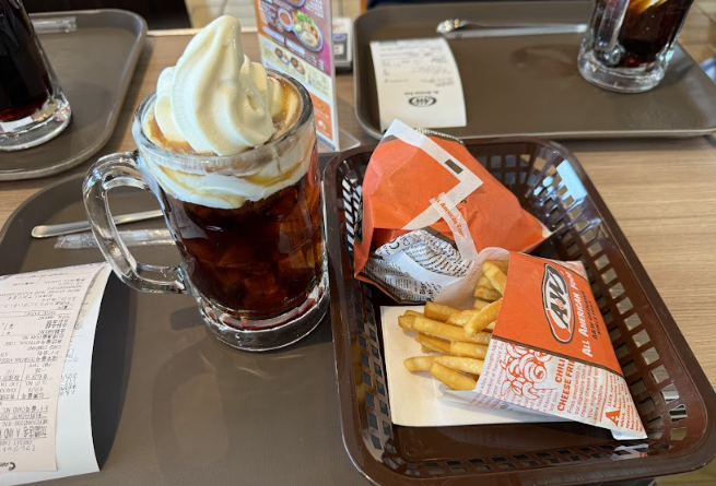あいにくの天候になってしまいましたが、運転手さんにおすすめの場所を聞き地元民御用達のグルメを堪能する班、今話題のA&W牧港店で食事を撮る班、アメリカンビレッジに行きアメリカの雰囲気を味わう班、おきなわワールドへ行き鍾乳洞を見て感動する班、万座毛に行き象の鼻に似た形の断崖を見に行く班、各班がいろいろな所へ行き、とても満足してホテルに帰ってきました。