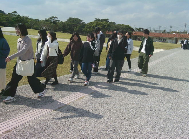 事前学習で沖縄の歴史を学び、実際に見ていろいろと感じることも多く、時間が短く感じた生徒も多い様子でした。