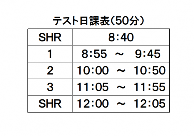 日課について変更がある場合があるので、担任の指示を聞いてください。