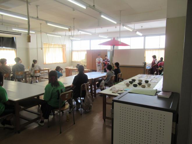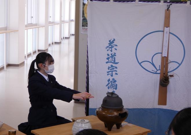 茶道お稽古、華道お稽古 数寄屋袋作り(1年生)、茶扇子入れ作り(2年生) 高校生茶会参加 |