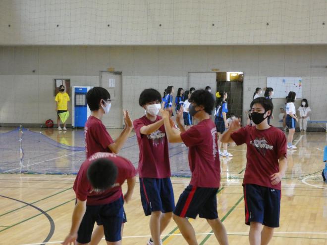 猛暑の中、クラス対抗での球技会が行なわれました。バレーボールとバスケットボールでは、優勝クラスと教員チームの対決が実現。遠慮のない全力プレーでの激闘が繰り広げられました。