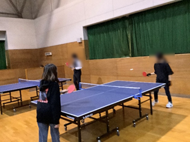 「明るく」「楽しく」をモットーにしています。 いつも笑い声が聞こえる楽しい部活動です。 全くの初心者の人でも大丈夫です。 いっしょに卓球を楽しみましょう。 |