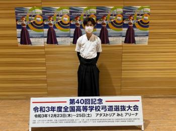 男子 個人の部 準優勝 2年(第40回記念令和3年度全国高等学校弓道選抜大会 県代表)