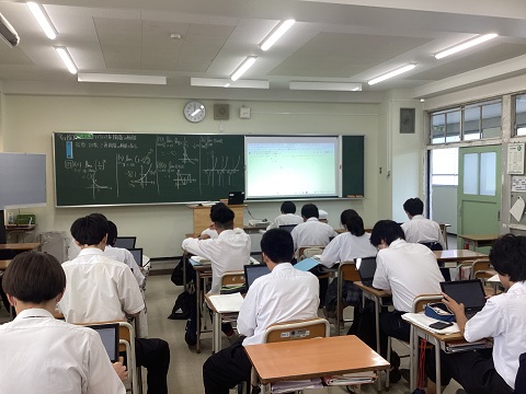 3年次「数学III」の授業では、数学学習・数学教育用の無料のデジタルツール「GeoGebra(外部サイトへリンク)」を活用し、関数の極限について理解を深めました。