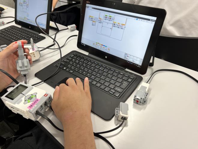 発表後は大学の教授からレゴマインドストームのプログラム制御について実習講義がありました。