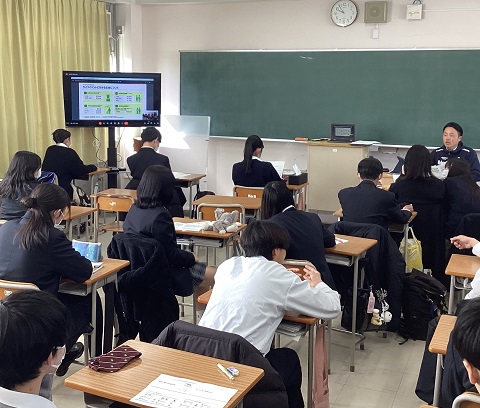 2年次は、三井住友銀行様から講師をお招きし、成年年齢引き下げに伴うローンクレジットについてのお話や資産形成についてのお話を、GoogleMeetを活用して受講しました。