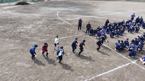 2年次は、年度末の学年行事としてスポーツ大会を開催しました。ドッジボール、ドッジビー、クラス対抗リレーを行い、担任の先生も一緒に参加して大いに盛り上がりました。