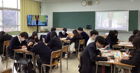 1年次の総合的な探究の時間では、外部講師による進路ガイダンスをGoogle meetを活用し、各クラスへ配信する形で実施しました。後半は分野別に分かれてガイダンスを受講しました。 生徒の振り返りからは、