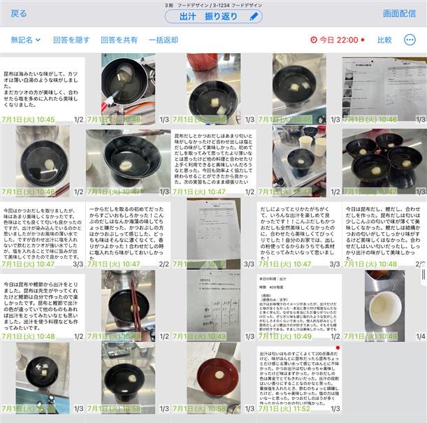 3年次のフードデザインの授業では、ロイロノートを活用し、出来上がったものの記録と振り返りを行いました。