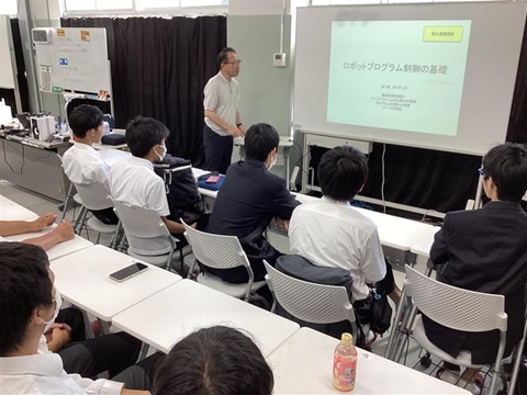 本校では、神奈川工科大学と連携してロボット制御に関する実習を行っています。