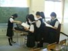 1年では、「道程」「雲」などの詩や「春はあけぼの」などの古文を、2年では「論 語」などの漢文を含め、古典等を短時間で覚え、全員で声をそろえ大きな声で感情をこめて暗誦しています。また、発表、グループ討論や、「書くこと」の活動を多く取り入れます。冬には百人一首大会を行います。
