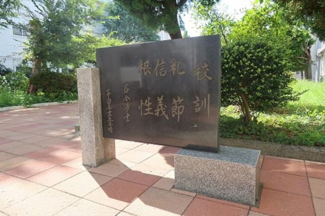 「昭和38年11月、本校が創設されて間もなく、校訓を定めるべく、よりより協議したものである。何れの学校の校訓をみても、なかなかむずかしい標語か、ないしは陳腐なもので、額入れのまま飾って役にたたないものが多いように見受けられる。そこで簡単にして、かつ実行可能なもので、本校の特色を十分発揚出来るものを眼目に、「礼節」「信義」「根性」の三項目を掲げたのである。礼節は古めかしいありきたりの言葉で、改めて言を弄するまでもないが、そのわかりきったことが、実際には実行出来ないのが現状である。社会の秩序に従い、人として当然実行すべき道が礼であるなら誰しも当然可能なはずだが、なぜ可能でないのか。根本的に言えば形式的には礼について知っていても、本質的には体得していないということである。(中略)