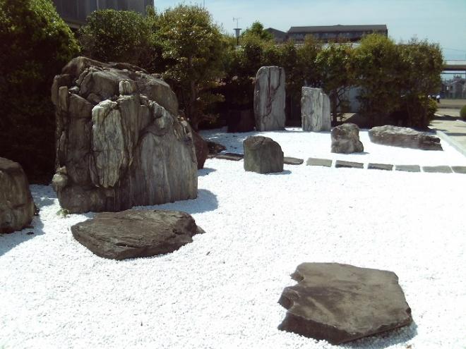 右の三つの右が「礼節」を、中央は、どっしりすえられた大きな石を中心に「根性」を、そしで左側のニつと、真ん中の飛び石が「信義」をそれぞれ表している。