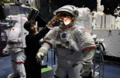 写真左:JAXA(約53万㎢の敷地に最新の試験設備を備えた日本の宇宙開発の中枢センター。「宇宙服といっても素材、着る順番、備えている機能は国によってさまざま。説明を受けているうちに自分が宇宙服を着ることを想像してしまいます!!)