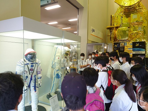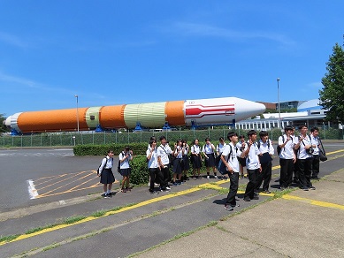 約53万平方メートルの敷地に、研究学園都市にふさわしい緑ゆたかな環境と最新の試験設備を備えた総合的な事業所であり、日本の宇宙開発の中枢センターとしての役割を果たしている施設。メインの展示館「スペースドーム」の展示物にかかわる「人工衛星」「国際宇宙ステーション」「小惑星探査機はやぶさ、はやぶさ2」について調べ学習を行ったうえで訪問した。