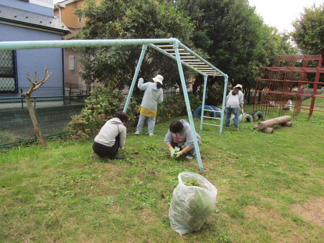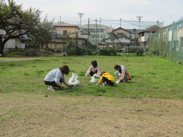 10月31日(月曜日)に保護者の皆さん、PTA本部役員の皆さん、教員併せて約20名の皆さんが、3班に分かれて、前庭花壇の周辺、駐車場周り、グラウンドを除草し、とても綺麗になりました。