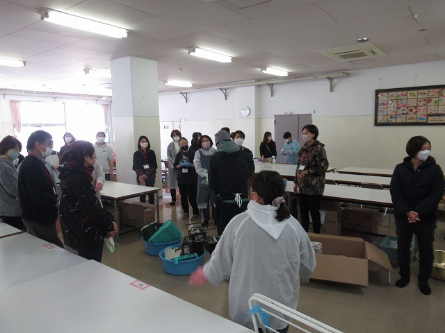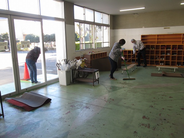 12月22日(金曜日)に保護者、教員合わせて40名近くの皆さんが、昇降口と食堂の清掃を行いました。