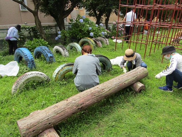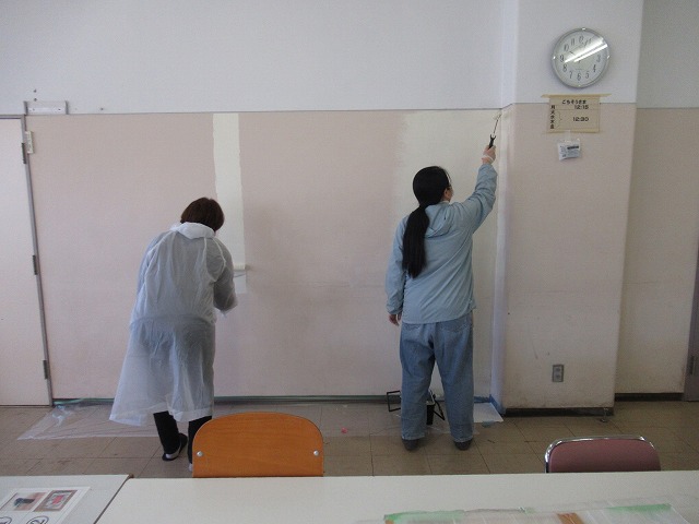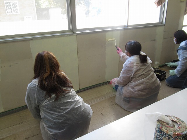 初めてペンキ塗りをする保護者の皆さんからは、「意外と上手に塗れた」「壁が見違えるように綺麗になって良かった」等の声を聞くことができました。
