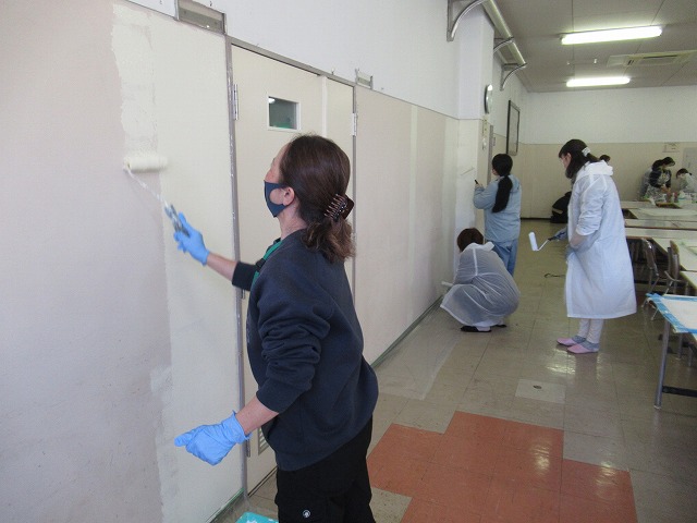今年は、新たに食堂のペンキ塗りを活動に加え、丁寧にローラーと刷毛を使ってペンキ塗りをしました。