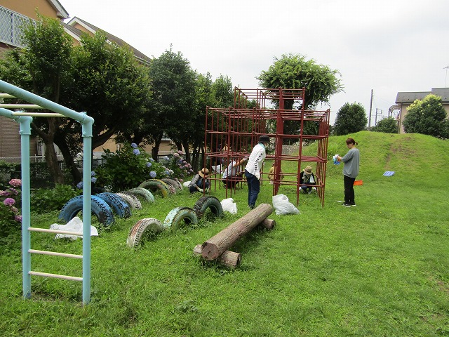 6月25 日のPTAサポーター活動には、20名近くの保護者の方と教職員が一緒になって、グラウンドと中庭で草をむしったり柵に絡まった蔦を取ったりしました。当日は蒸し暑いながらも日差しはなく、会話を楽しみながら、作業を行うことができました。