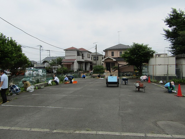 6月27日(火曜日) にPTA主催の「草むしり」が行われ、2回に分かれて50名近くの保護者と教職員が一緒になって、中庭や駐車場の草むしり、グラウンドの石ころ拾いをしました。