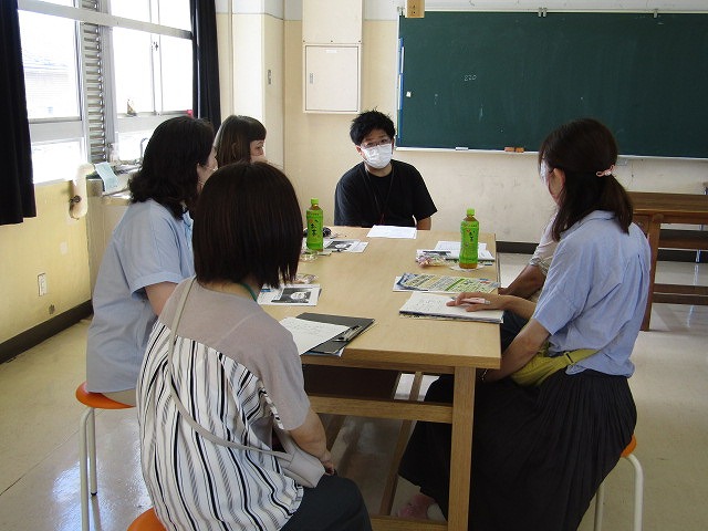 暑さが厳しい日が続いていましたが、当日は朝まで小雨が降っていて、涼しい中で作業を行うことができました。作業後は、美術室でグループに分かれて懇談会を行いました。