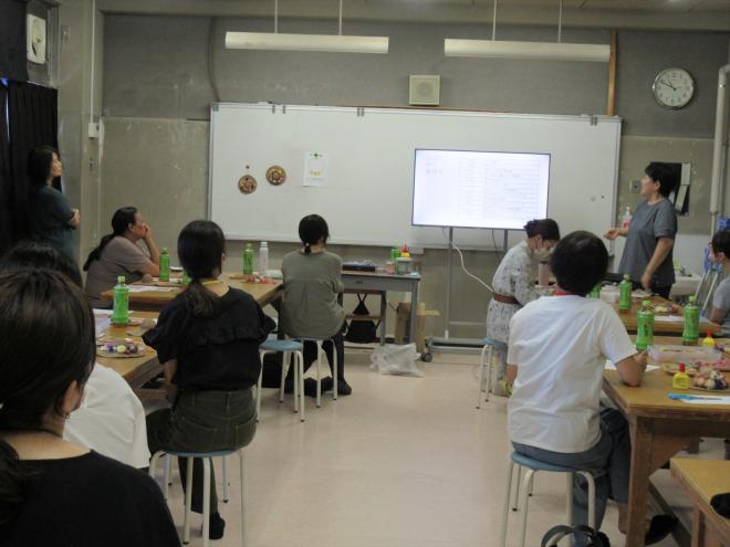 ワークショップはみなさん集中して作業しながらも、植物をみて「かわいい」と癒されたり、 お話をしたりして交流をしていました。「ワークショップは楽しかった」「余暇についてはもっと 詳しく知りたかった」などの声があり、充実した研修活動になりました。