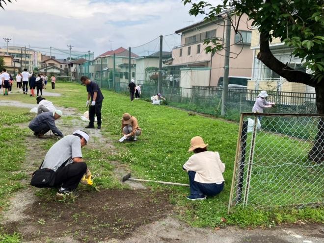 雑草が増えたグラウンドが、少しづつきれいになっていきます。とても暑い中、ありがとうございました。