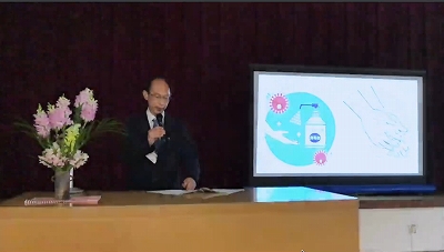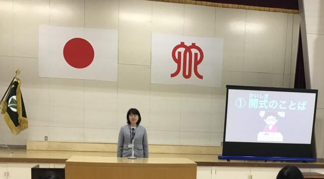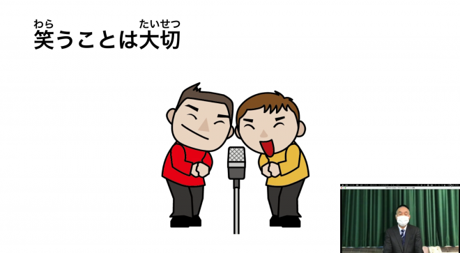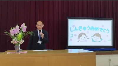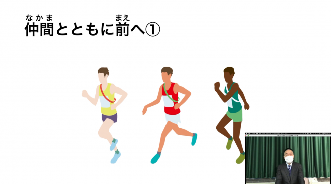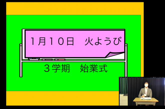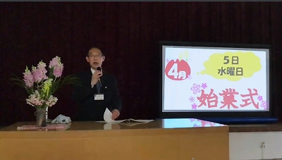 始業式(本校)はライブ配信を行い各教室で見ました。始業式では教頭先生がお話をしてくれました。