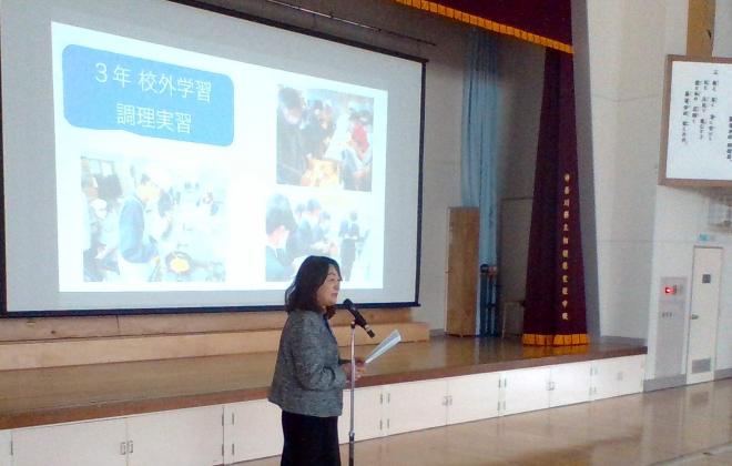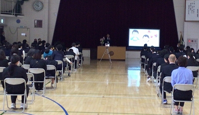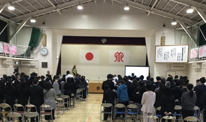 3月24日、3年ぶりに体育館で修了式を行いました。高等部は体育館、小学部、中学部は教室でライブ配信を見て参加しました。