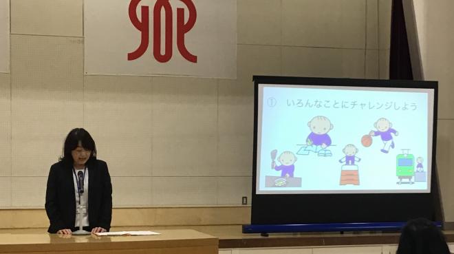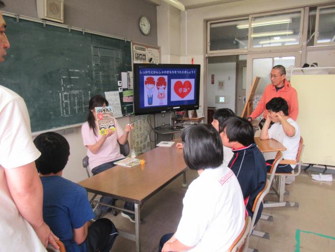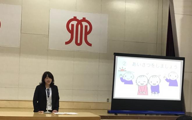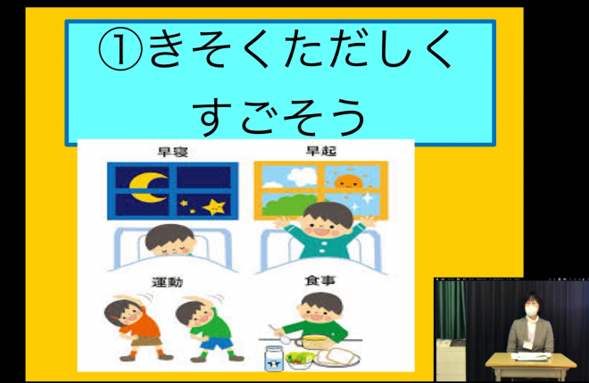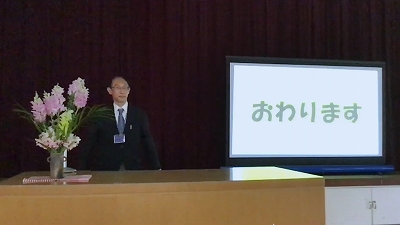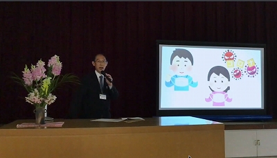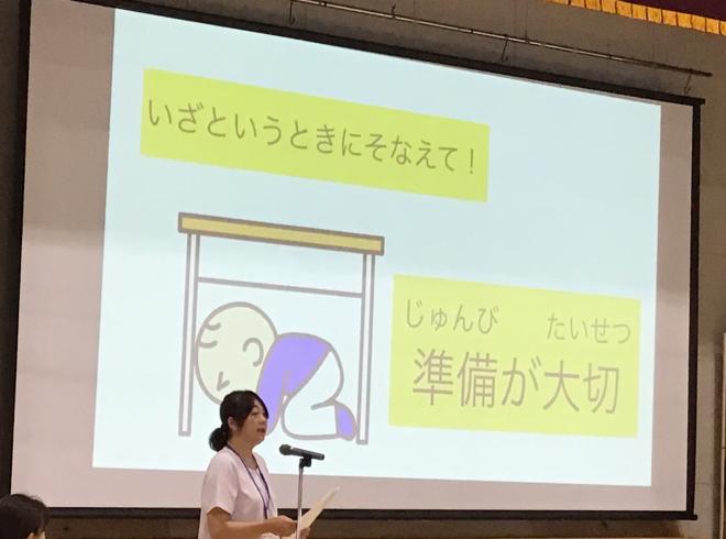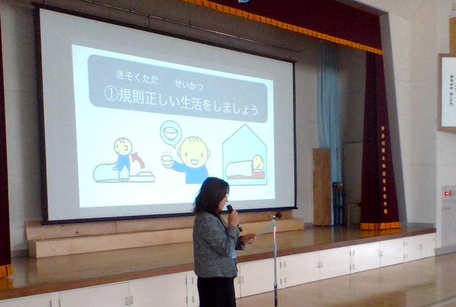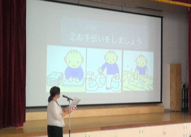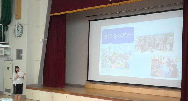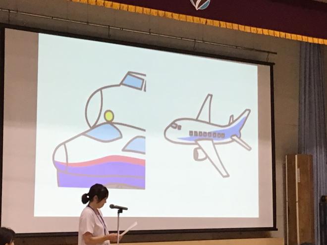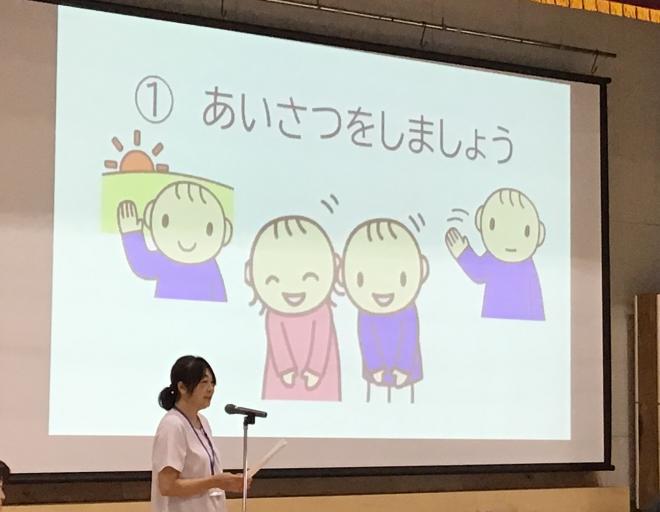 夏休みは「規則正しい生活をしましょう」、「お手伝いをしましょう」、「熱中症に気をつけましょう」などスライドを交えながら分かりやすく話をしてくれました。長い夏休み、いろいろなことにチャレンジしましょう。
