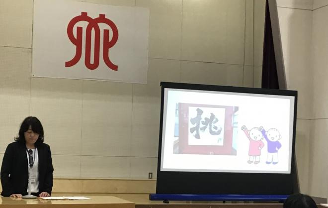 いろんなことにチャレンジしよう。寄贈された” 挑 ”の字も紹介してくれました。