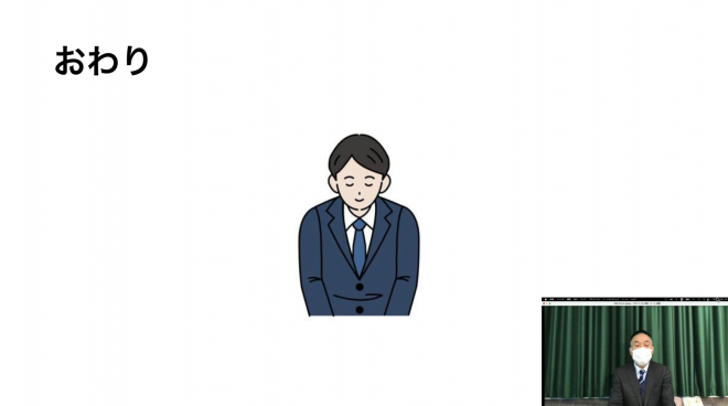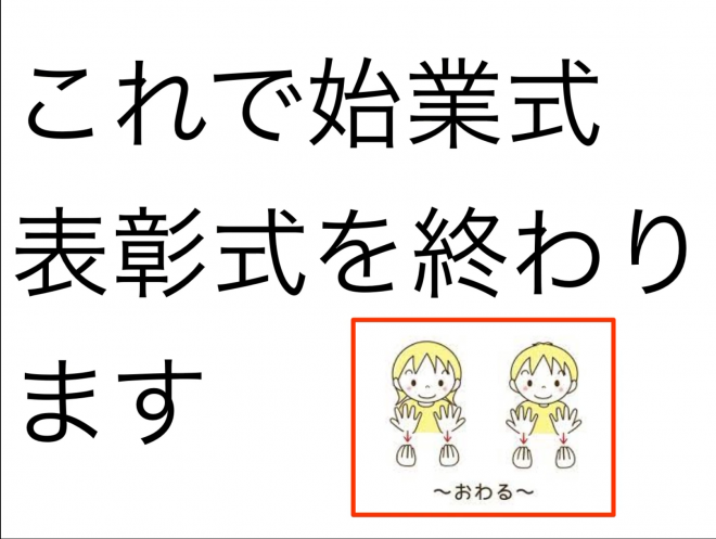 こちらはデレクター役の先生。タイミングよくスライドを動かしました。2学期は9月1日からです。元気にお過ごしください。