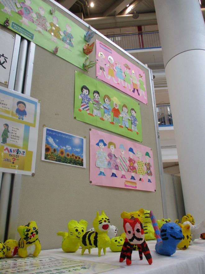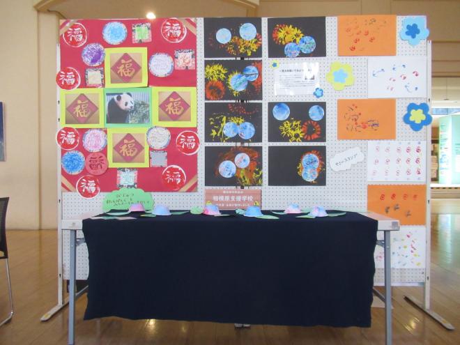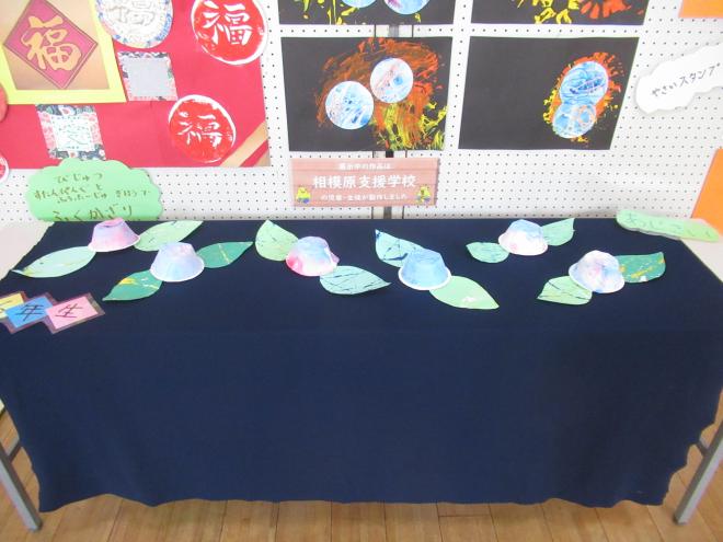 小学部児童が制作した「こいのぼり」や「お月見団子スタンプ」、中学部生徒が制作した「福飾り」いずれも力作ぞろいでした。ご覧いただいた皆さま、ありがとうございました。