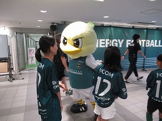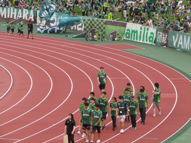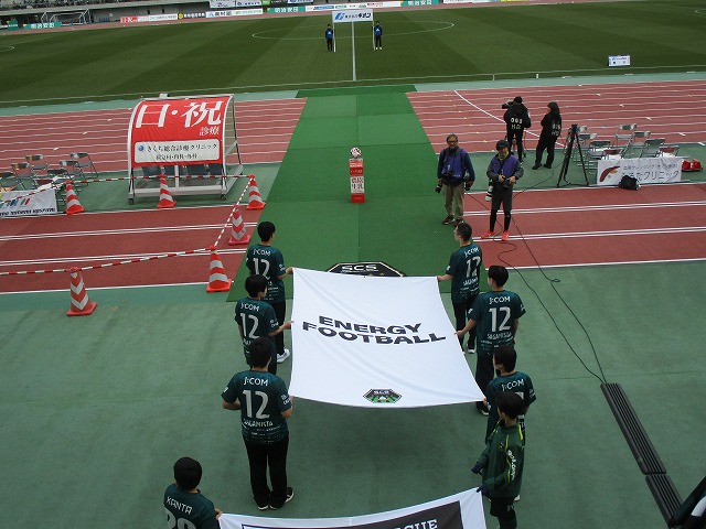 またエスコートキッズ(選手と手をつないでピッチに入る)のメンバーが足りなくなり、急遽生徒1名が参加し、フラッグベアラーと共に、多くの観客が見守る中、選手を誘導してピッチに入場する大役を果たすことができました。