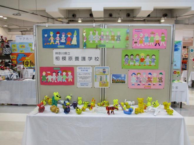 7月31日~8月2日の3日間、イオン相模原店1階パブリックスペースにて「第48回相模原地区 障害児・者作品写真展」が開催されました。相模原市内の福祉施設や学校21団体が参加し、作品や自主製品の展示・販売を行いました。連日、多くの方々に見ていただき、3日間で1,159名の来場がありました。本校からは、高等部3年生の作品を展示しました。