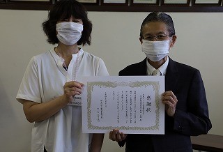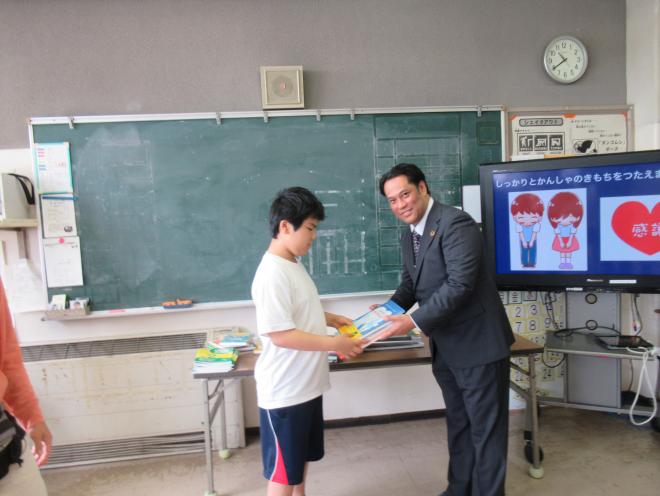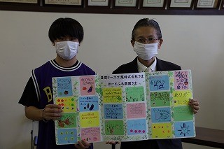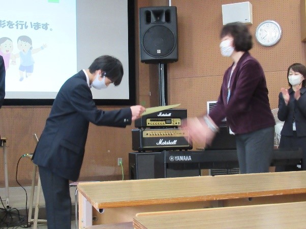 生徒代表から生徒作成の感謝状を関山社長に手渡しました。